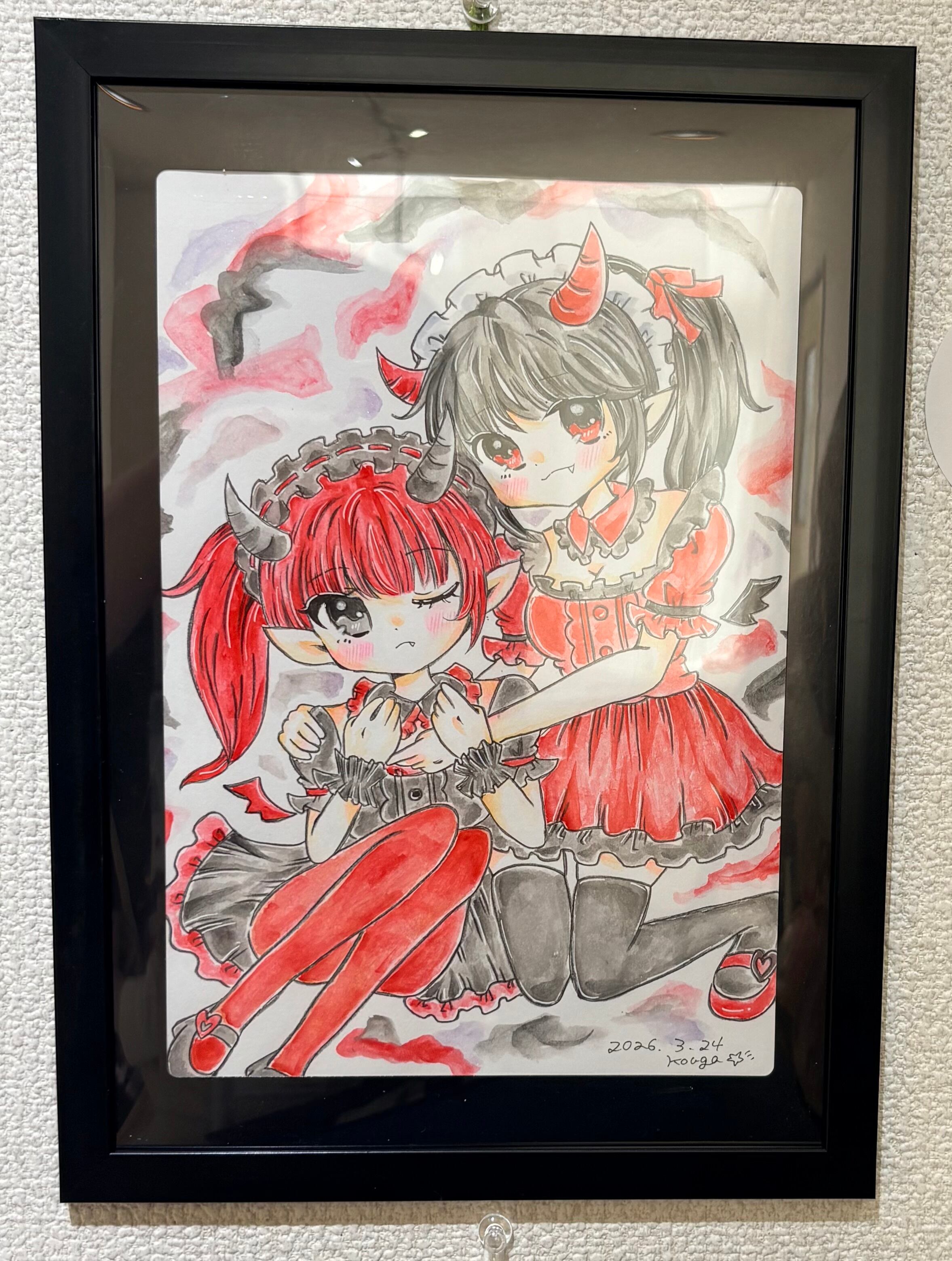 双子デビルは可愛いく背景はちょっと怪しげなダークなイメージで仕上げました。