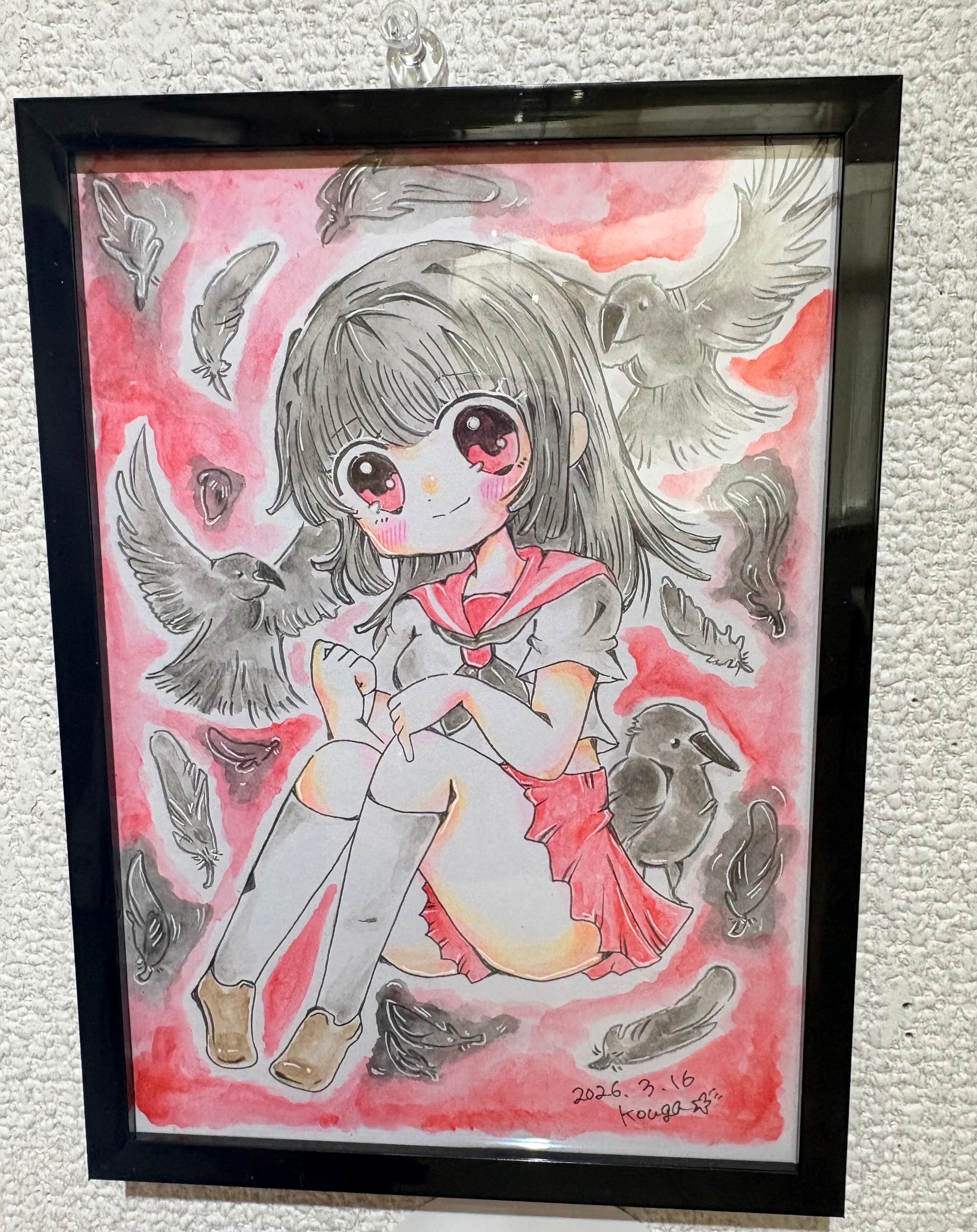 女の子もカラスも可愛い感じで仕上がりましたが赤黒の色でかっこいいを表現しました。