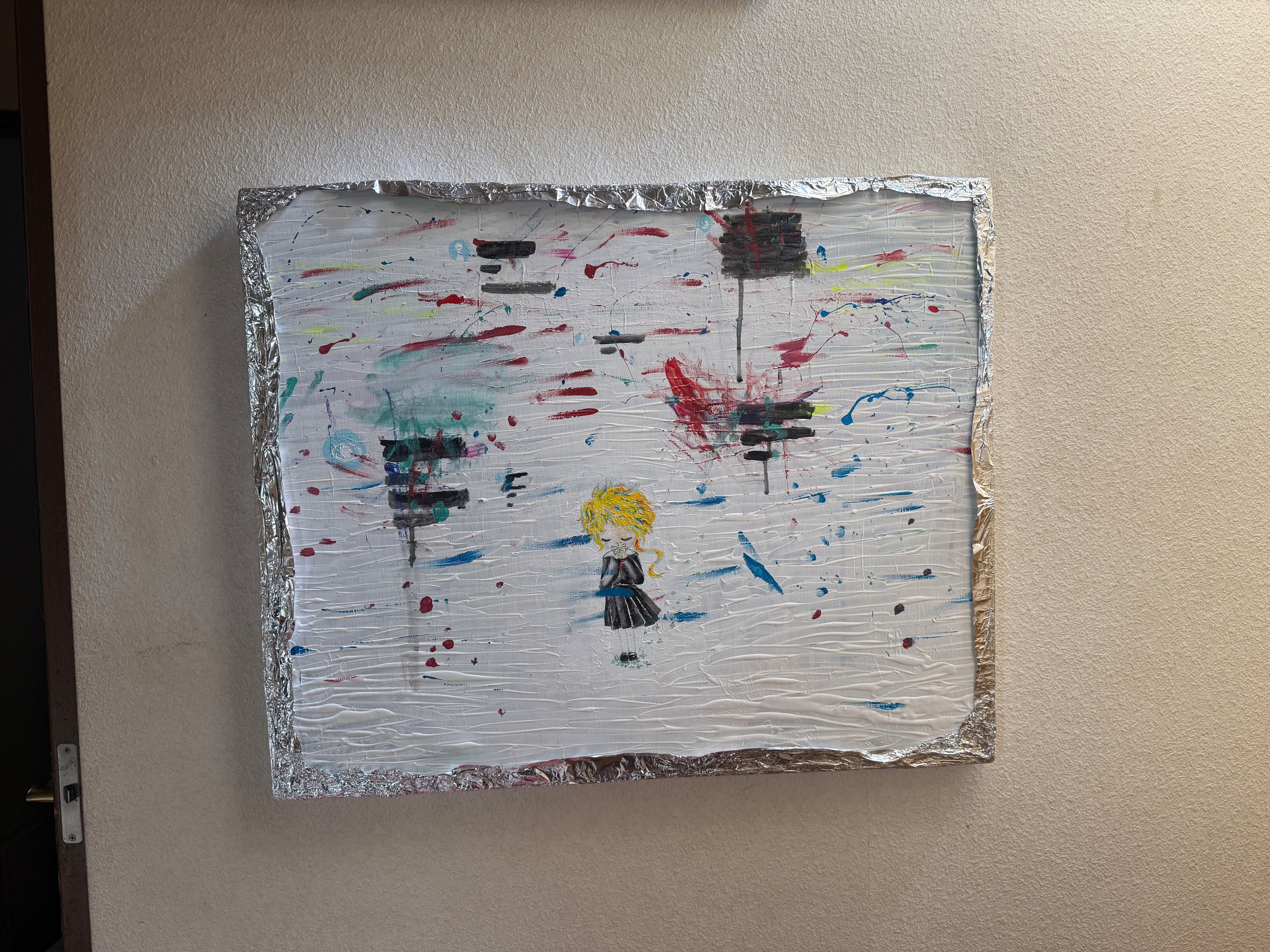 キャンバス F25 アクリル絵の具 アルミホイル。